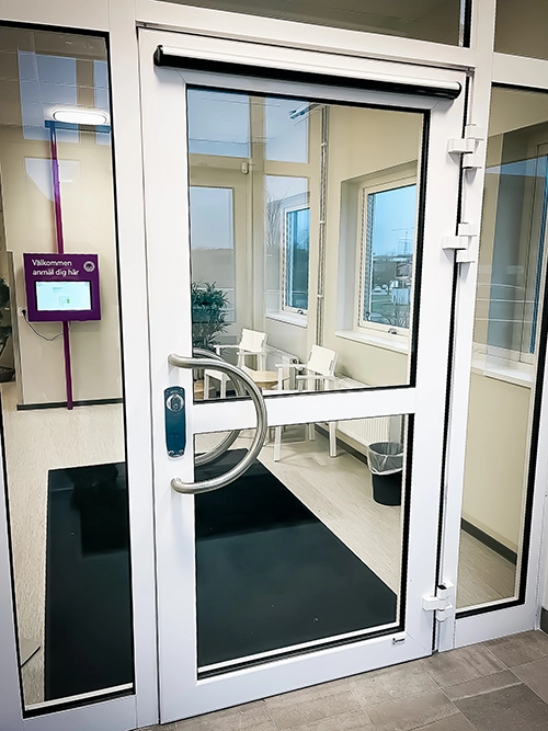 Vi monterar dubbla tätningslister i EPDM-gummi, en i dörrkarmen och en i dörrbladet, för att säkerställa optimal tätning och lång livslängd.