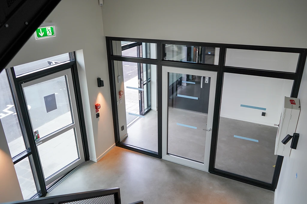 Ett stort antal kallfasader har monterats, ett fasadsystem utan isolatorer direkt på platsbyggda väggar från MTA. Dessa kallfasader har vi glasat med fasadglas (enkelglas) i samma kulör som profilerna. De två glastaken är utrustade med öppningsbara luckor med motorer. Utöver detta har vi levererat invändiga brandpartier för att skapa en komplett och säker arbetsmiljö.