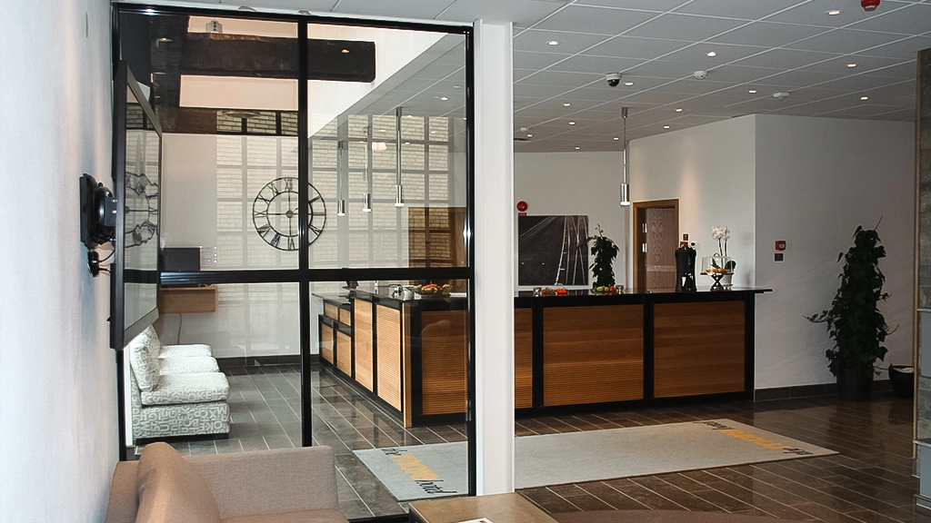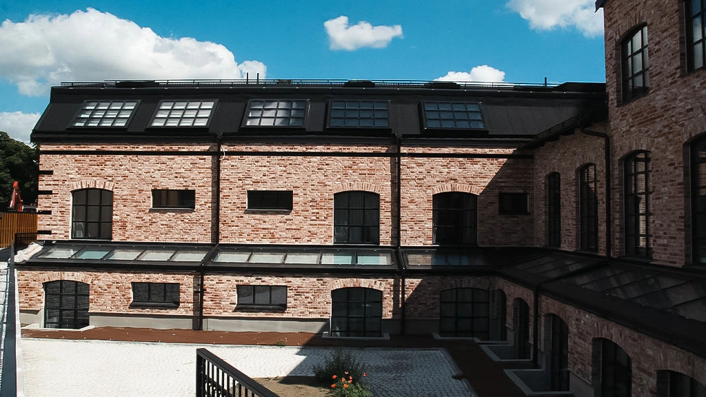 Överallt i byggnaden finns våra Millennium-partier i olika storlekar och med olika funktioner. Glasfasader, aluminiumdörrar och fönster, där alla partier har som ett gemensamt mål att bevara byggnadens industrikänsla med t.ex. mycket spröjsning och extremt smala profiler.